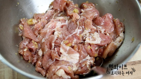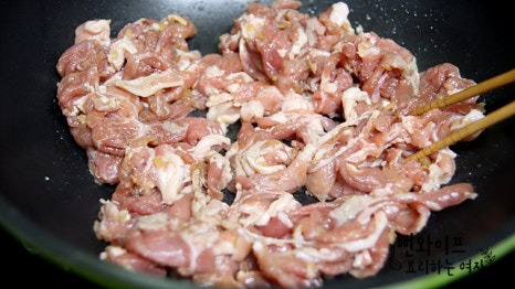 팬에 기름을 약간 두르고 고기를 넣고 중불에서 볶다 보면 익으면서 촉촉해집니다.