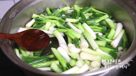 쪽파를 살짝 데치면 매운맛은 줄어들고 은은한 단맛이 올라오는데요.