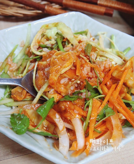냉장고 사정대로 야채 휘리릭 썰고 밥이랑 초장만 얹어서 비비면 얼마나 맛있다고요.^^
