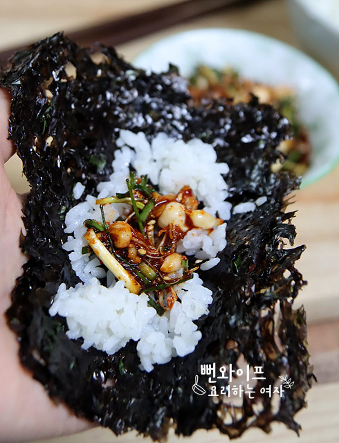 달래장은 이렇게 곱창김에 밥이랑 올려서 싸먹어도 좋고 국수 양념장으로도 아주 좋아요.