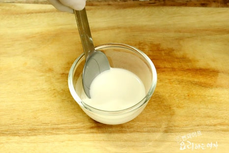 전분 1큰술에 물 1큰술 넣고 전분물을 만들어 주세요.