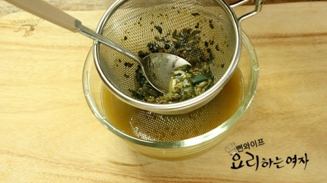 전복 내장 우린 물 2+1/2컵을 부어 주세요.