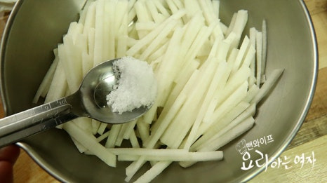 소금 1/2큰술 넣고 20~30분 정도 절여 줍니다.