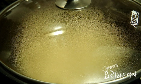 뚜껑 덮어서 센 불로 해서 끓으면서 김이 나기 시작할 거예요. 2분 지나면 콩나물 비린내가 구수한 냄새로 바뀝니다.