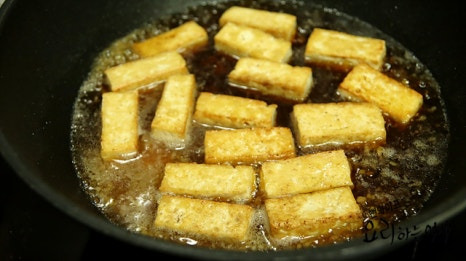 두부 굽지 않고 부드럽게 졸여도 맛있지만 튀기듯 구워서 양념에 졸이면 두부 싫어하는 아이들도 좋아할거에요.