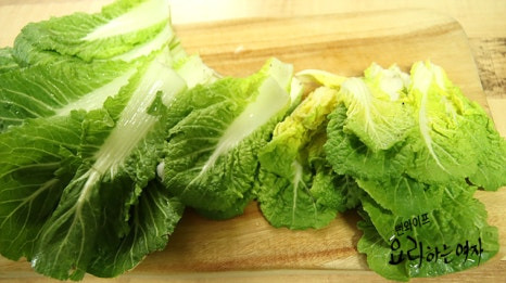 한가운데 연하고 노란 부분은 무침이나 겉절이에 좋고 가운데 부분은 부침개, 마지막 큰 잎들은 국물 요리에 좋아요.