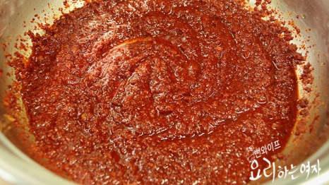 풀 대신 들어가는 멸치 육수는 양념의 농도를 맞추는 용도이기 때문에 한꺼번에 넣지 말고 양념의 상태를 봐가면서 조절하세요.