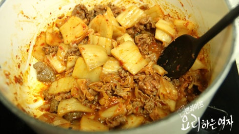 어떤 걸 같이 넣고 끓이든 맛있는 김치찌개는 언제나 환영이에요.
