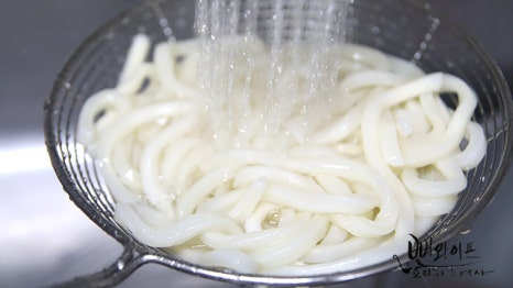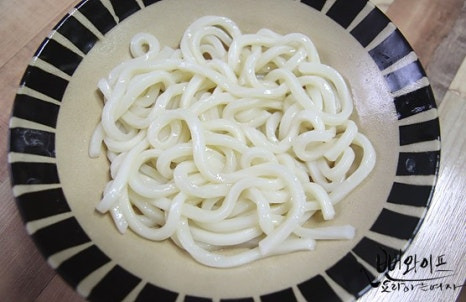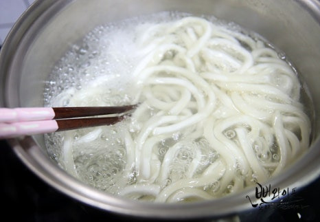 팔팔 끓는 물에 우동사리를 넣고 2분간 데쳐서 자연스럽게 풀어지도록 하면 됩니다.