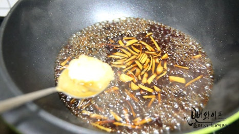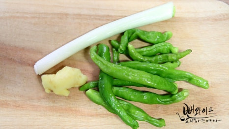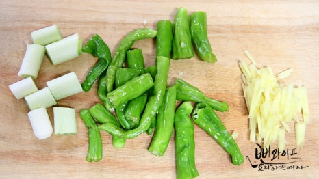 생강은 얇게 채 썰고 꽈리고추와 대파는 큼직하게 썰어 주세요.