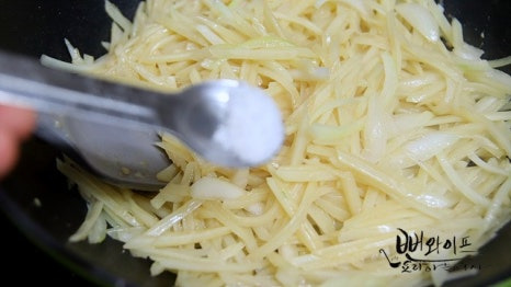 감자만 넣고 볶으면 타박해서 건조함을 느낄 수 있지만 달큼하고 촉촉한 양파가 들어가면 훨씬 더 맛이 좋아져요.