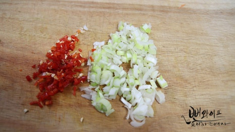 양념에 들어갈 대파와 홍고추는 잘게 다져 줍니다.