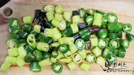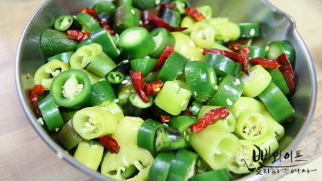 아삭이 고추, 오이고추, 풋고추, 파프리카 등으로 만드셔도 좋습니다.