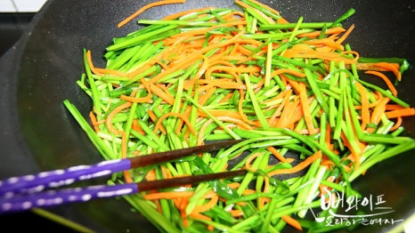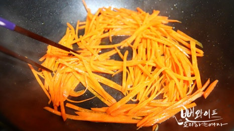 너무 곱게 채 썰면 볶아놨을때 가늘어지고 식감도 볼품도 없어져요.
