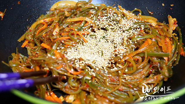 미역줄기가 부드럽게 볶아졌다 싶으면...