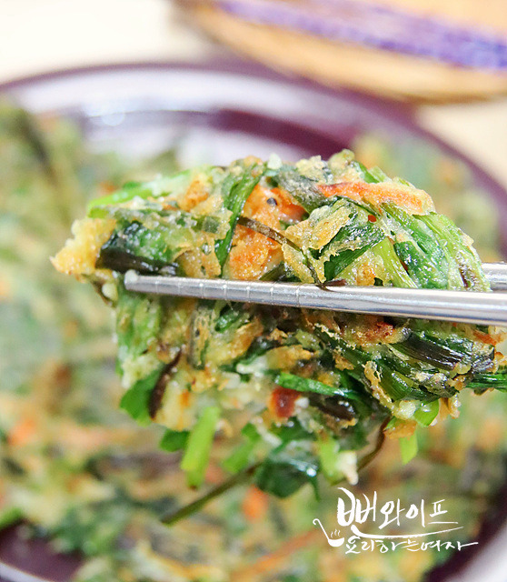 부추전에 해물이 잘 어울리는데요.