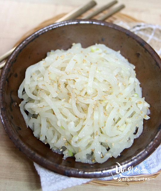 무는 식감을 살리려면 너무 곱게 채 썰지 않으면 됩니다.