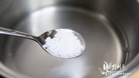 숙주가 잠길 정도의 물 3컵 붓고 소금 1/2큰술 넣어 줍니다.