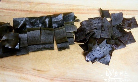건져낸 다시마는 다른 재료와 비슷한 크기로 썰어서 마지막에 넣어서 마무리합니다.