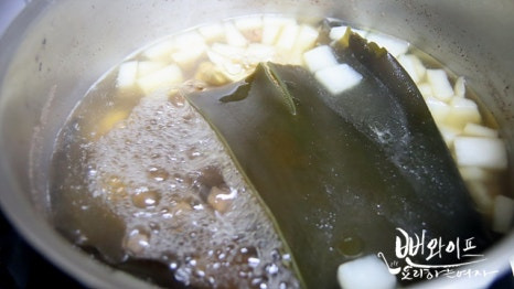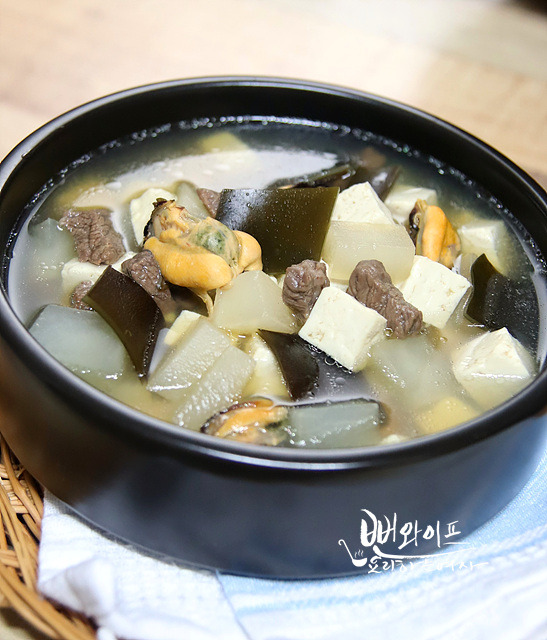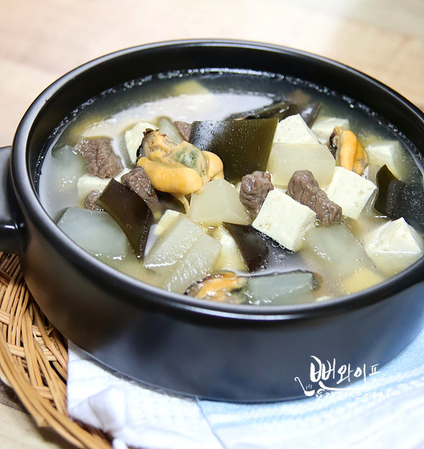 시원하고 감칠맛을 내는 홍합과 다시마를 넣어주면 국물 맛이 기가 막힙니다.^^