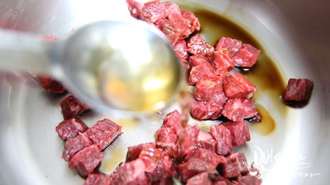 냄비에 소고기를 넣고 국간장 1큰술, 맛술 1큰술 넣고...