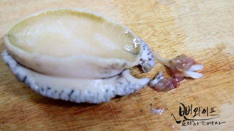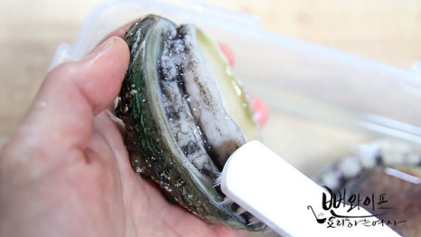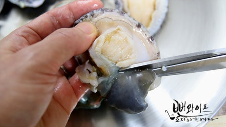 관자가 떨어지는 느낌이 나면 전복을 뒤집어서 당기면 자연스럽게 떨어져요.