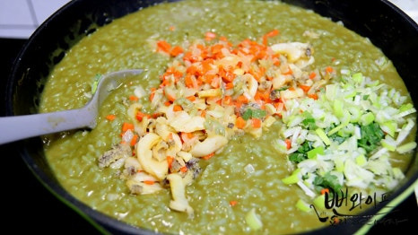 쌀이 익어갈수록 국물이 걸쭉해지기 때문에 바닥이 눋지 않도록 긁어가면서 끓여 주어야 합니다.