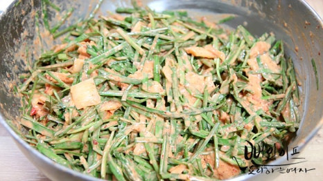 부추는 김치와 비슷하거나 더 길게 썰어 주셔도 됩니다.