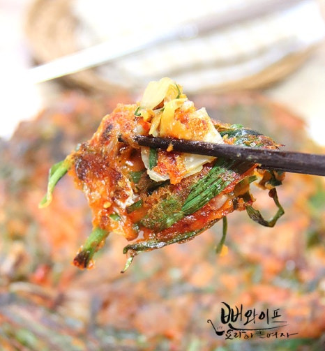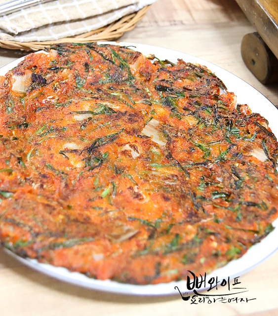 부침가루로 하실 때 전분을 1:5 비율 정도로 약간 넣고 부치면 훨씬 더 바삭함을 즐길 수 있습니다.