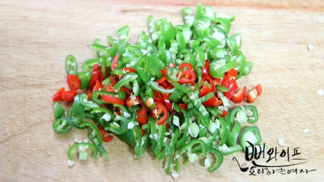 매콤한 청양 고추는 잘게 썰어 주세요. 썰어 놓은 재료 모두 볼에 담아 주세요.