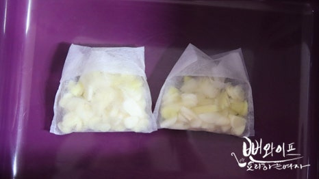 동치미 국물이 깔끔하려면 생강이나 마늘을 다지지 않고 얇게 편으로 썰어서 넣어주면 됩니다.