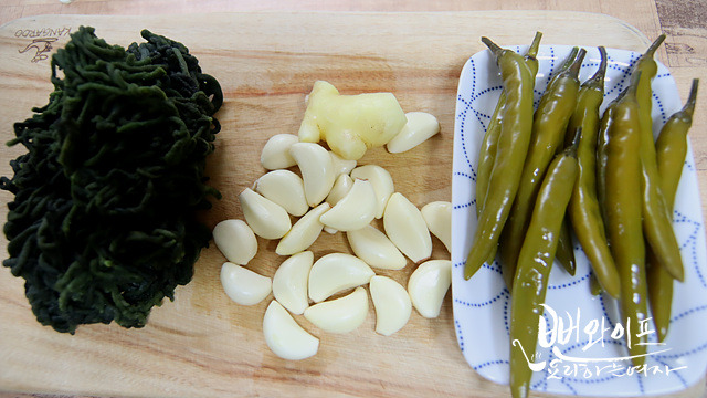 청각, 삭힌 고추, 깐 마늘, 생강입니다.