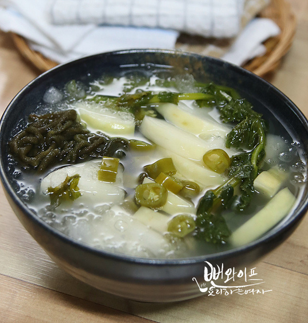 청각은 국물을 시원하고 향긋하게 내려고 넣어 주는 거니까 잘게 썰지 않아도 되고 성가시지 않게 나눠서 돌돌 말아줘도 됩니다.
