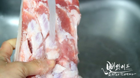 돼지고기는 사태나 전지, 후지, 목살 모두 좋아요. 물에 한번 헹궈 줍니다.