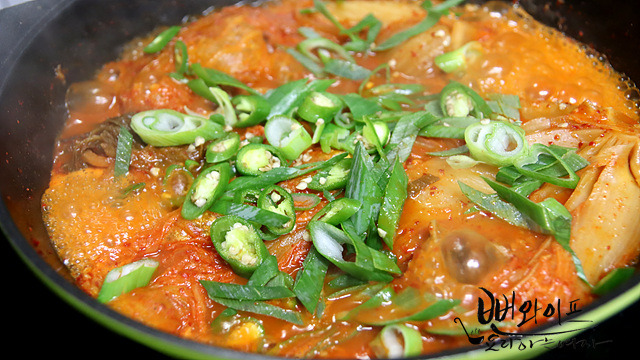 중간에 김치를 한번 뒤집어 주고 익히면 골고루 잘 익어요.