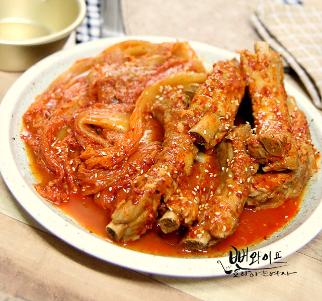 김치와 잘 어우러지게 고기에도 간이 잘 배어있고 등갈비살이 쫀득하면서 야들야들 힘들이지 않아도 벗겨져요.