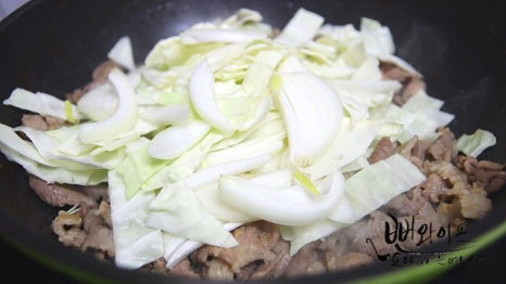 양파와 양배추 넣고...