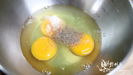 계란에 소금 1/2작은술, 후추 약간 넣어서 풀어 줍니다.