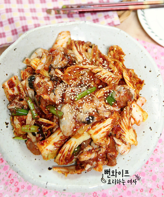 여기에 향긋한 굴 넉넉하게 넣고 무쳐 보세요.